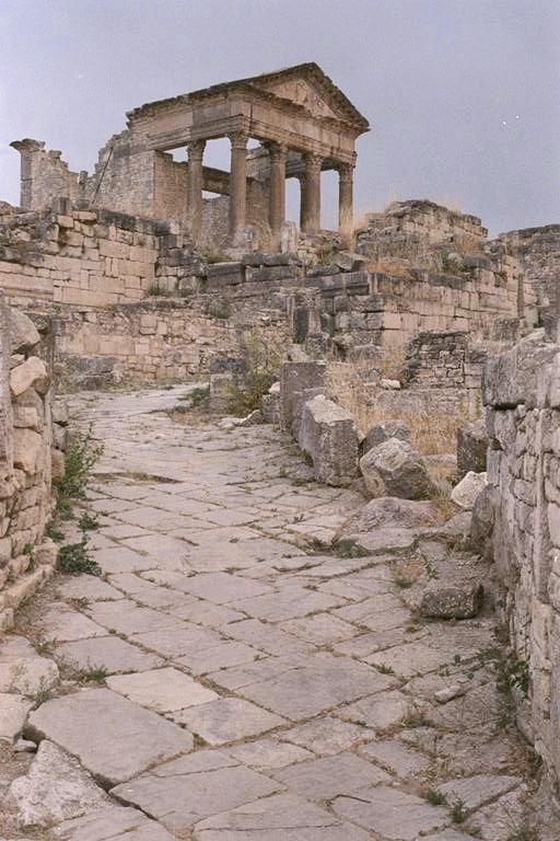 tunisia dougga: cityscape street and temple to rear 2 AD