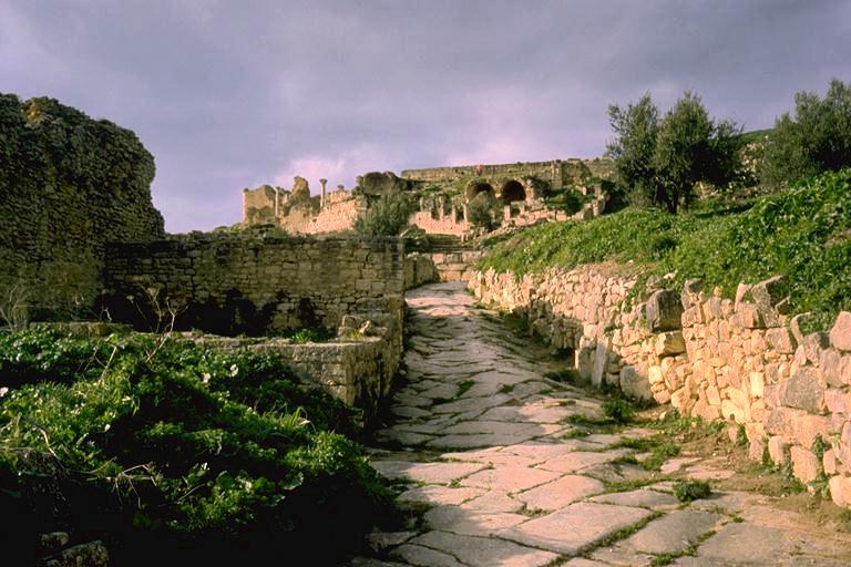 tunisia dougga: cityscape street with bath vaults view ? 2 AD