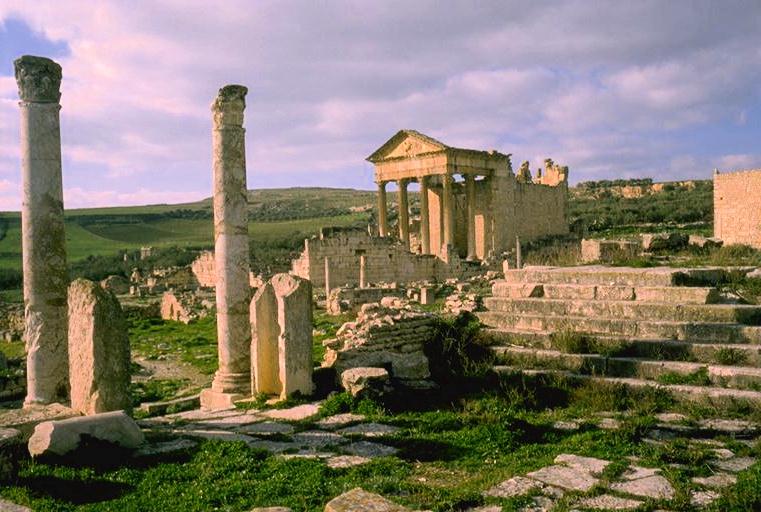 tunisia dougga: cityscape temple with forum in front view ? 2 AD